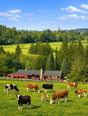 Unsere Küche orientiert sich an dem, was die Region und die Jahreszeit zu bieten haben. Frische Zutaten, handwerkliche Zubereitung und ein feines Gespür für Geschmack stehen im Mittelpunkt. Das erwartet Sie: Saisonal wechselnde Gerichte, regionale Spezialitäten, kleine und große Speisen für jeden Anlass, hausgemachte Komponenten. Ob herzhafte Stärkung nach einer Wanderung oder entspanntes Essen mit Ausblick – bei uns steht der Genuss im Vordergrund. Unsere Kulinarik, saisonal, regional, ehrlich Auch Ihr Hund findet hier eine erholsame Pause und ein Leckerchen. Genießen Sie den einmaligen Ausblick auch draußen in der sonnigen Almjause, wo auch im Winter heiße Getränke und kleine Speisen auf Sie warten. Hier schaut man Rodlern und Snowboardern bei der Abfahrt und beim Einkehrschwung zu. Im Sommer ruht der Blick auf weidenden Kühen.
